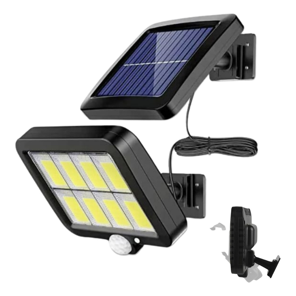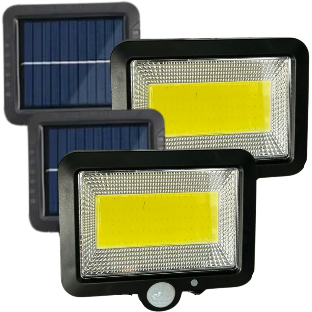Kit 2 Luminária Solar 120led Cob Sensor Presença 3 Funções