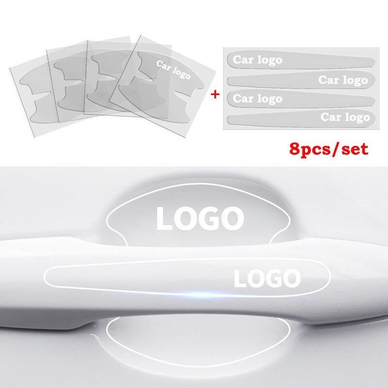 (Logo Carro) 8Pcs Adesivo Transparente Protetor De Maçaneta de porta de Carro