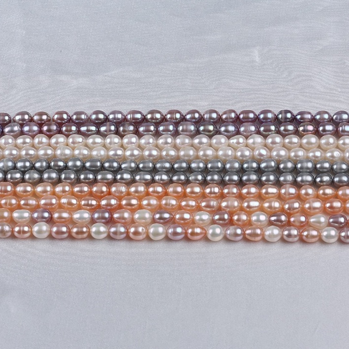 7-8mm strand natural Em Formato De Arroz/Colorido/Rosa Roxo/Cinza Para Fazer Bijuteria