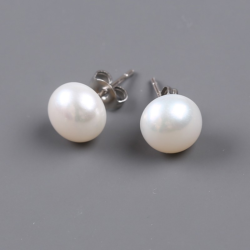 Um Par De Brincos Clássicos De Prata Esterlina 925 Com Pérolas Naturais/Culturadas/Água Doce/Formato De Botão