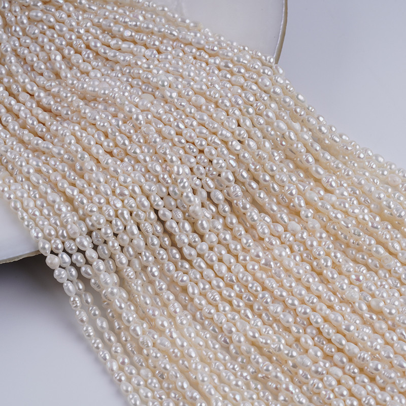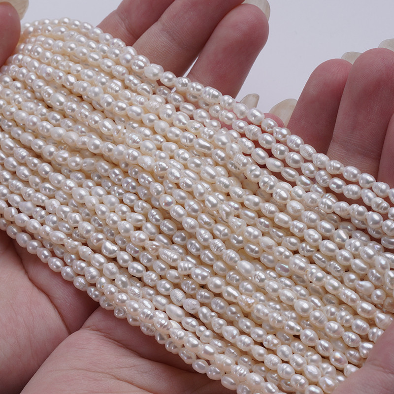 Preço De Atacado 33cm 3-4mm Cor Branca Formato De Arroz Fio De Pérola De Água Doce Para Fazer Joias