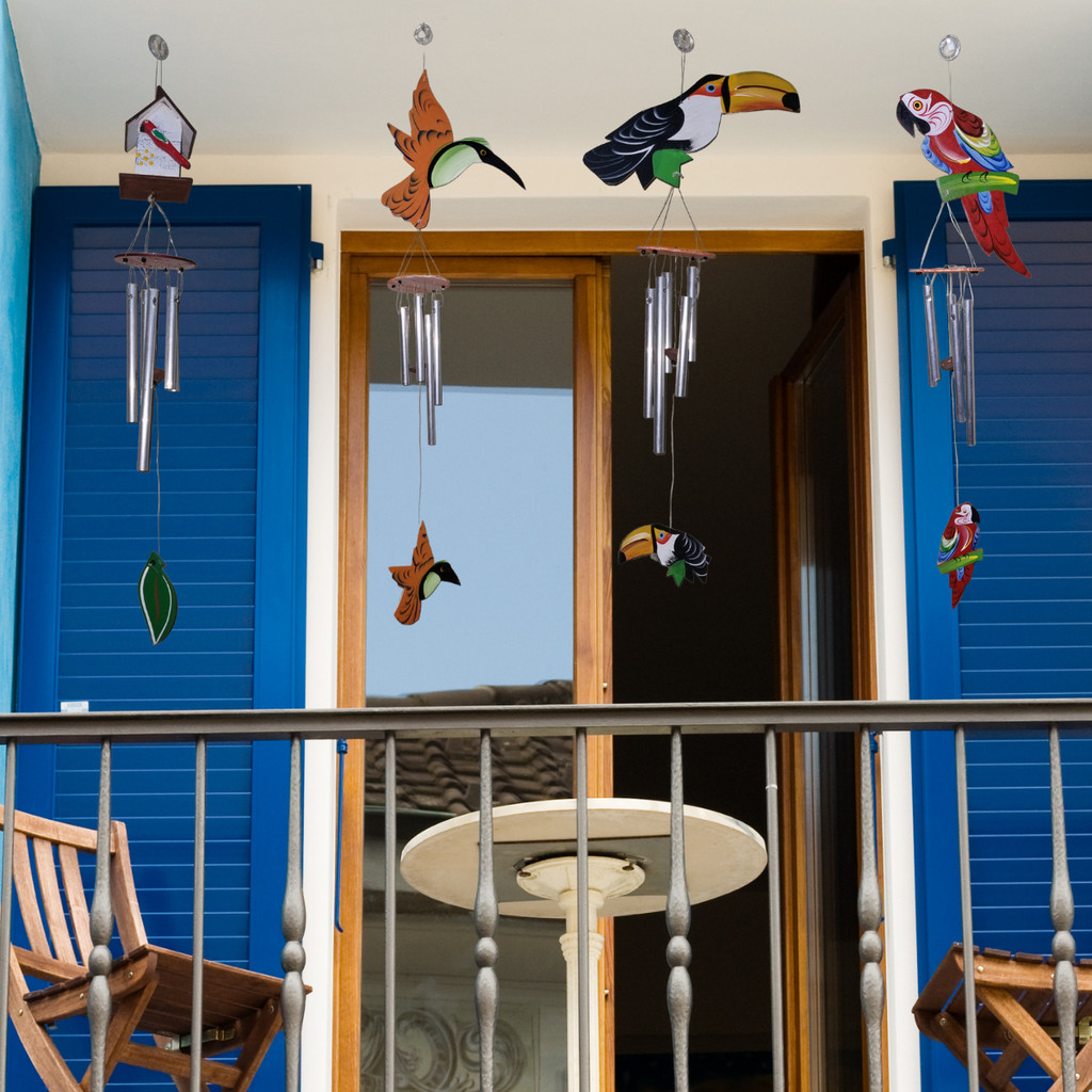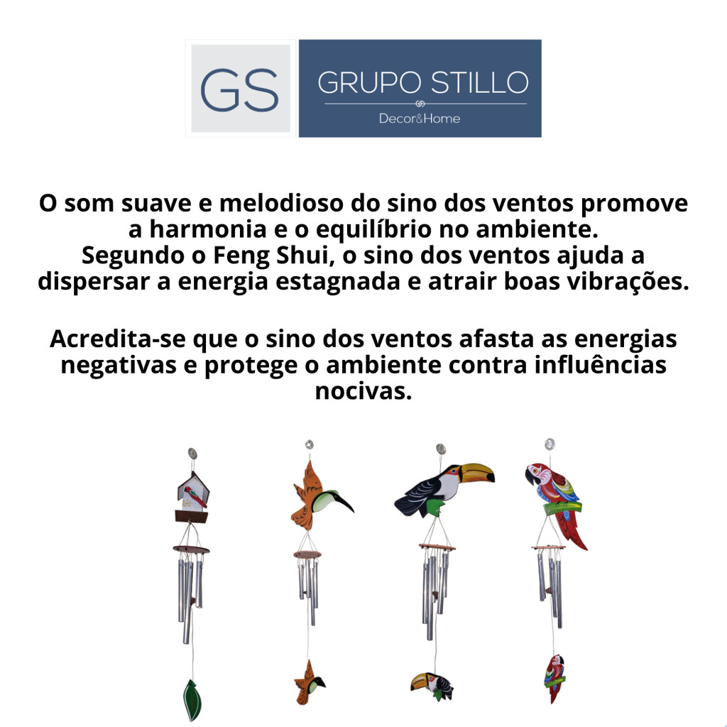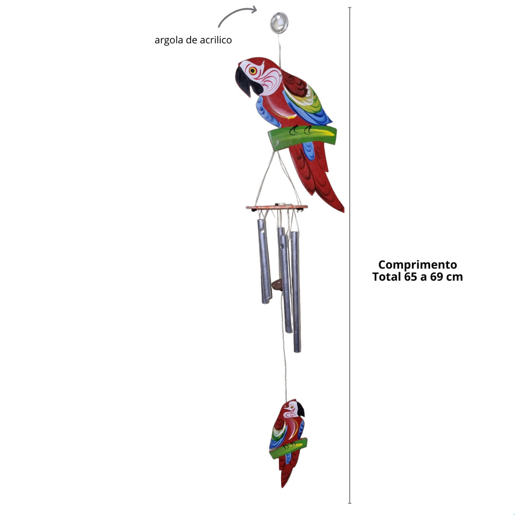 Kit 4 Sino dos Ventos Arara, Tucano, Beija-Flor, Passarinho