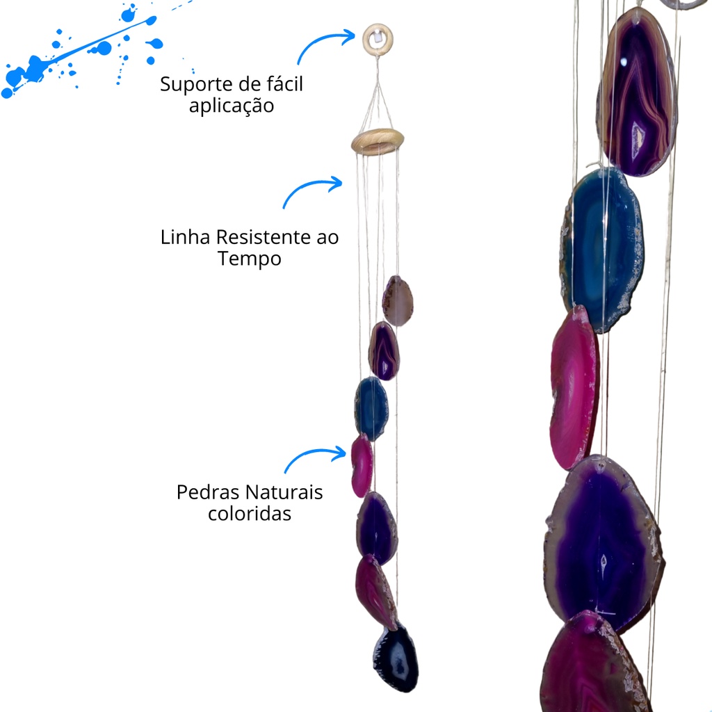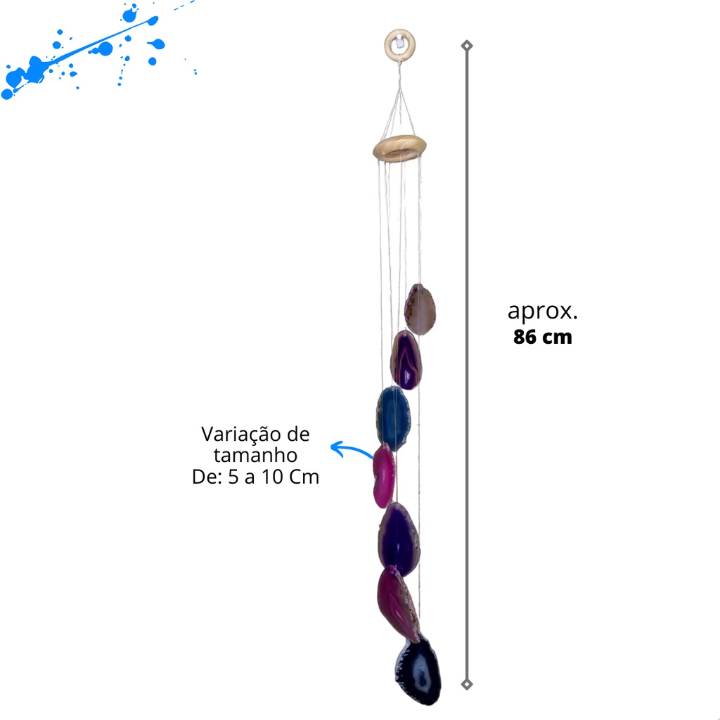 Mensageiro Dos Ventos De Ágata Mobile Sino dos Ventos 7 Pedras Coloridas Decoração