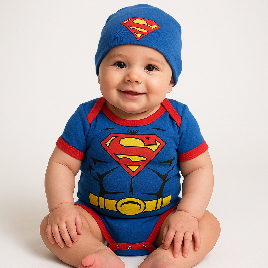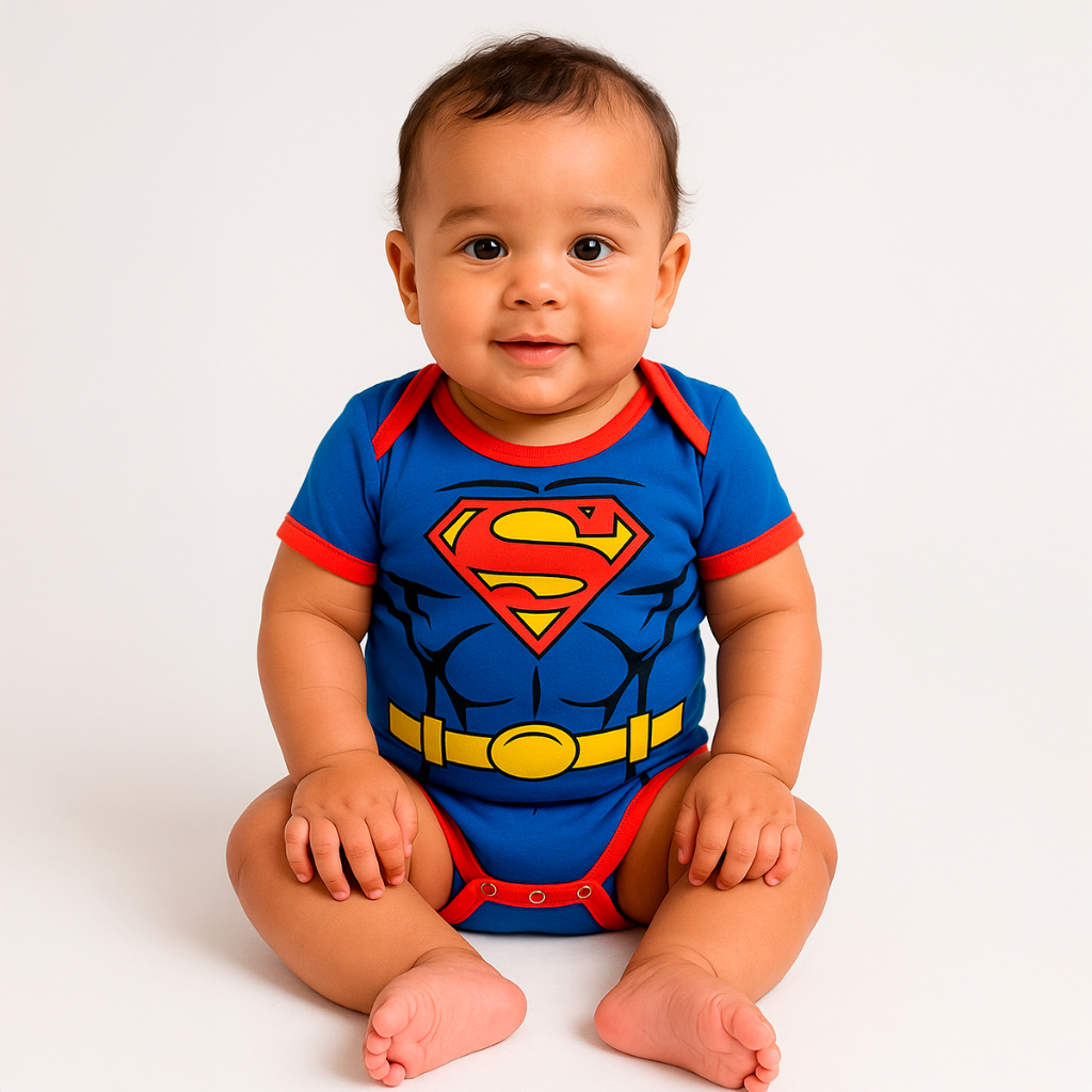 Body Bebê Infantil Menino Mêsversário Temático Superman Super Confortável Linha Premium