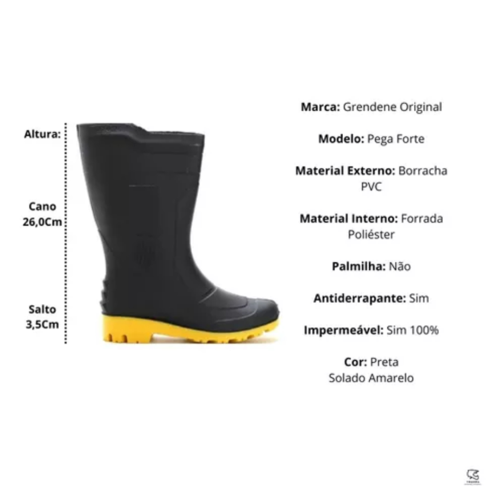 Bota Galocha Grendene Chuva PVC Impermeável solado Amarelo
