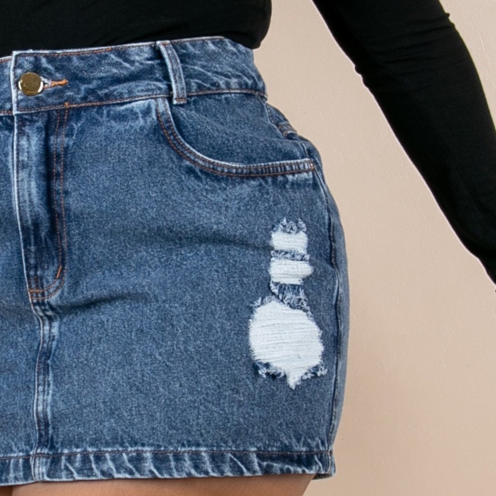 Saia Jeans Plus Size Barra Feita Feminina Cintura Alta