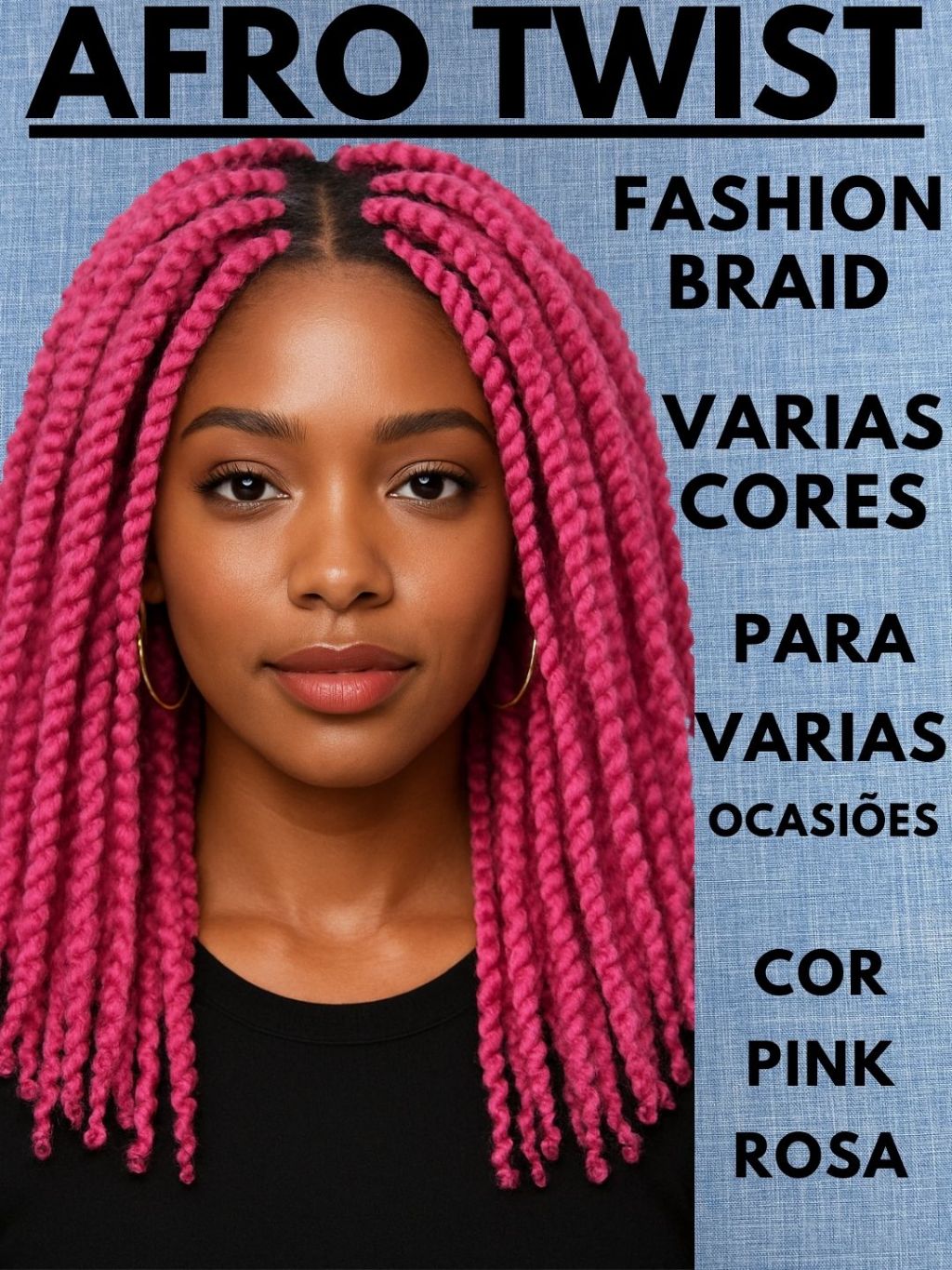 AFRO TWIST 40cm FASHION BRAID Cabelo Afro CROCHET BRAIDS Orgânico.