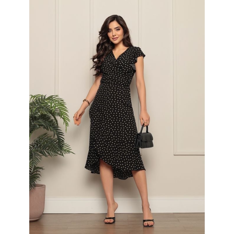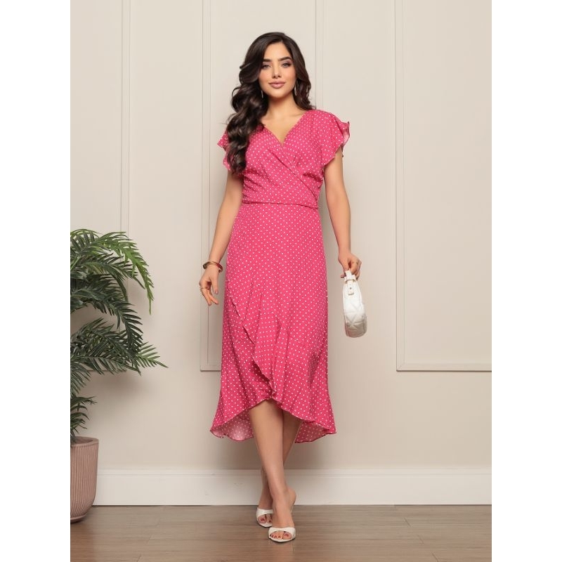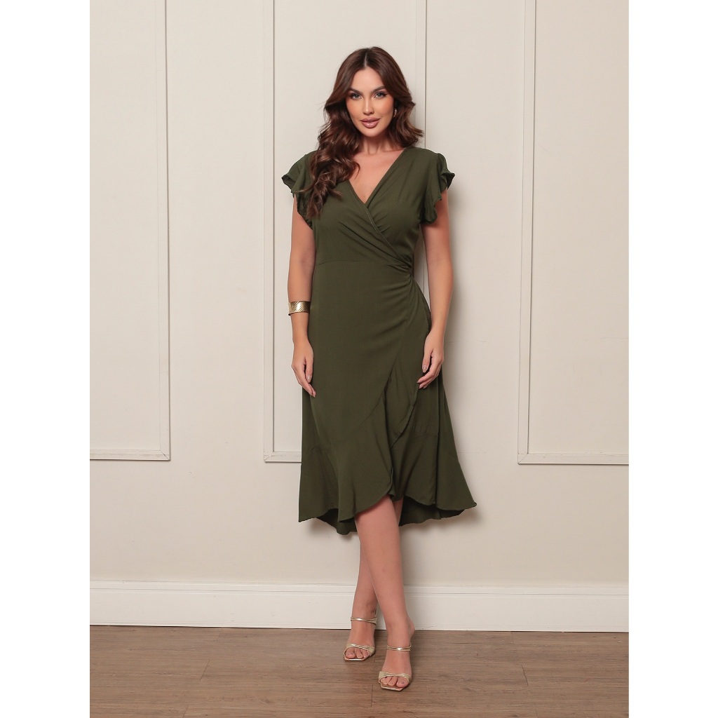 Vestido envelope Tipo Hobby Fenda Na Perna Transpassado amarrar na cintura 04