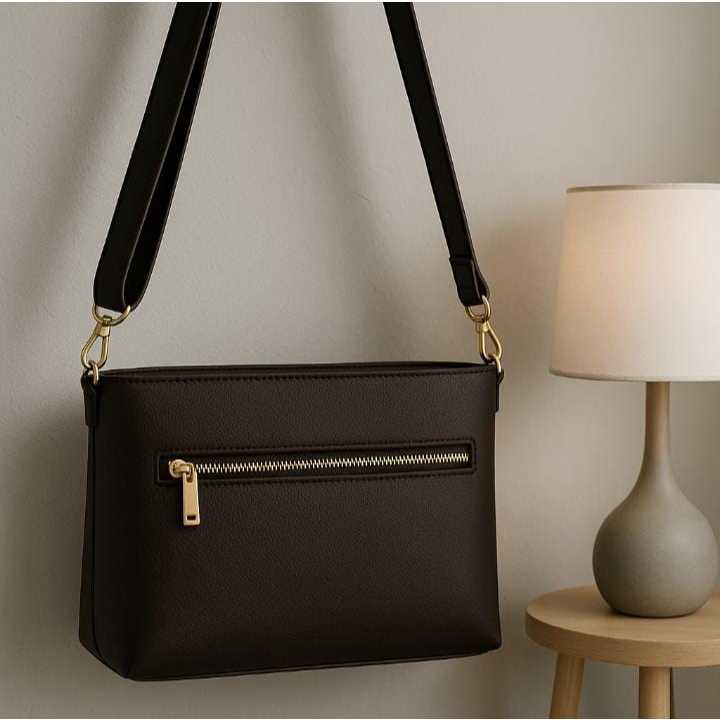 Bolsa Feminina Transversal em Couro Sintético | Alça Ajustável e Zíper Dourado – Moda Elegante e Sofisticada”