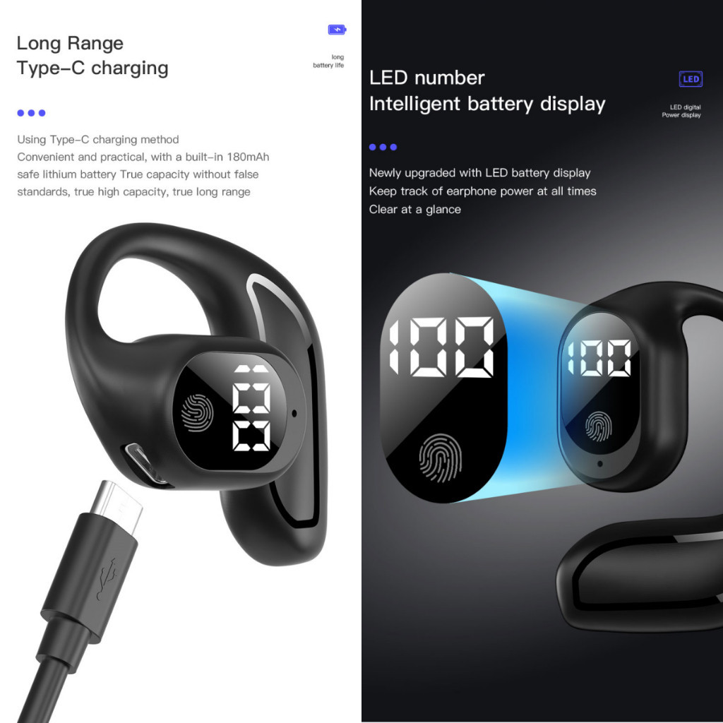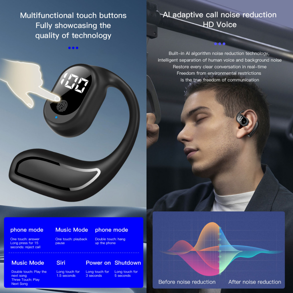 Fone De Ouvido Sem Fio Clipe Para Bluetooth 5.3 Estéreo HiFi Digital Sports Wireless Earbud Com Microfone