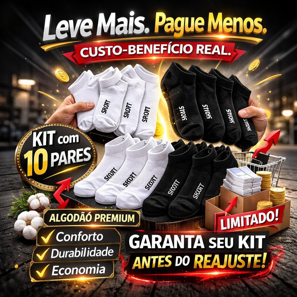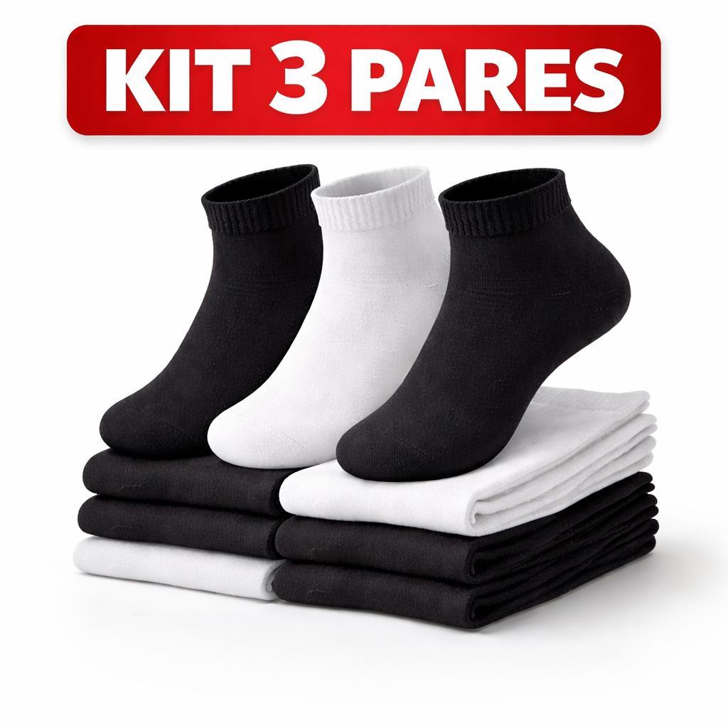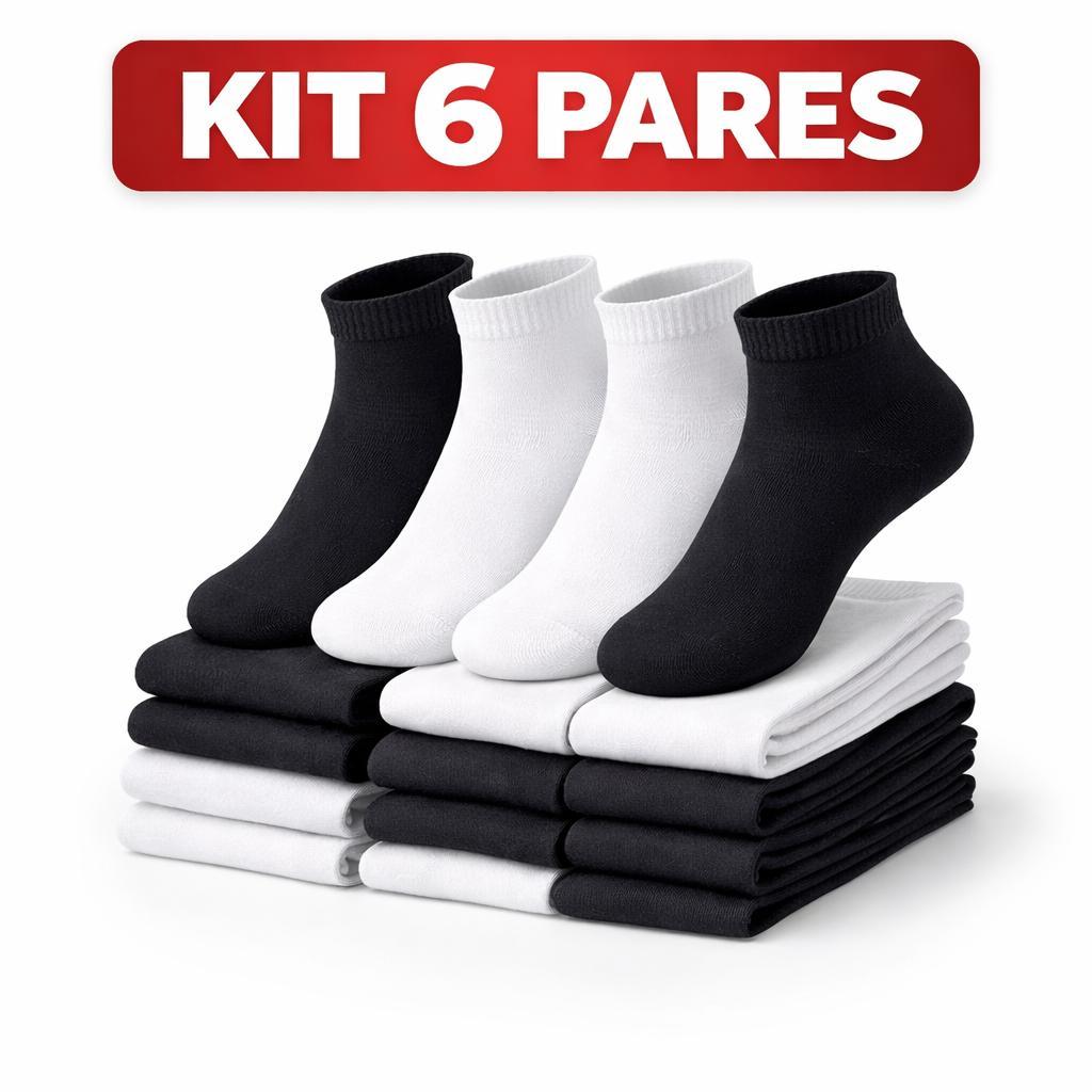 Kit Meia Soquete Algodão Premium 3, 6 ou 12 Pares Cano Curto Esportiva Masculina Feminina Confortável Preta Branca