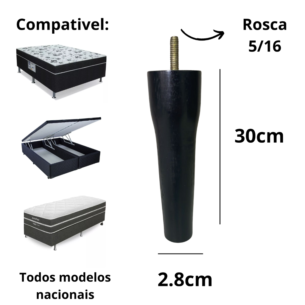 Kit Pés Palito 30 Cm Pés Para Cama Box Pés Conico Retro Diversas Cores.
