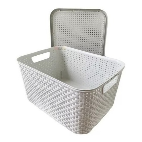 Cesto Organizador Rattan com tampa 15 Litros Branco