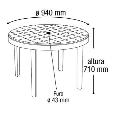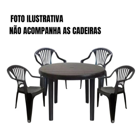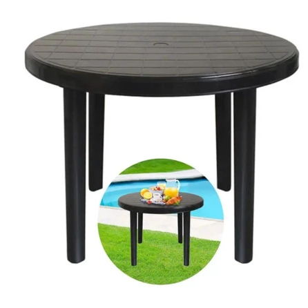 Mesa Plástico Redonda Desmontável Jardim Preta Dobravel TOY 25389