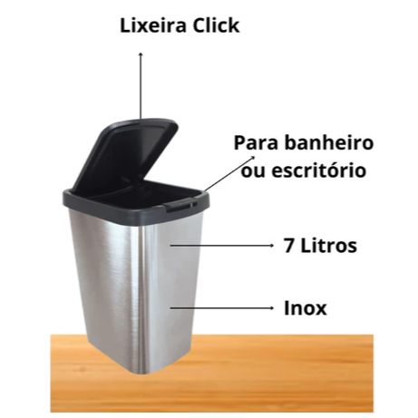 Kit 2 Lixeiras Práticas 9 Litros Prata Com Tampa Click Label Inox TOY