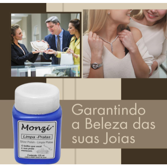 Limpa Prata Monzi 125 ml Limpa Corrente Prata Pulseira Brilho