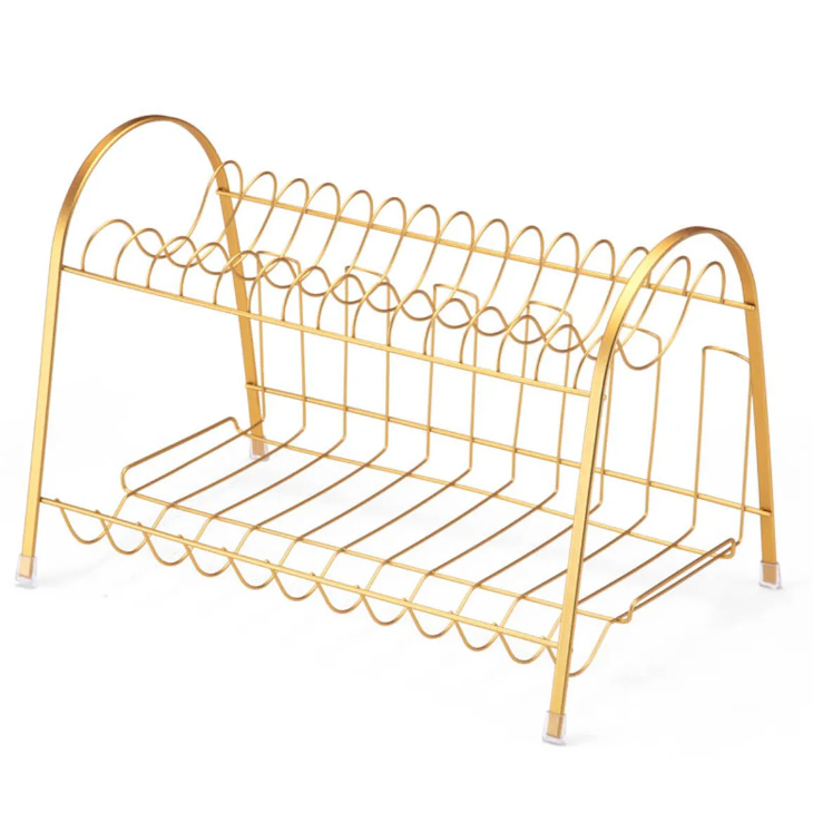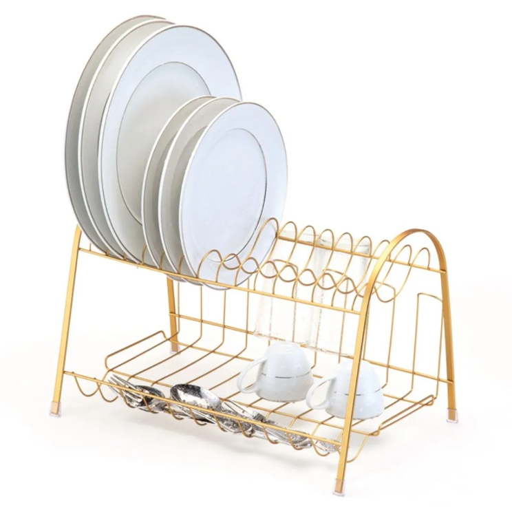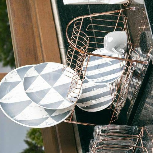 Escorredor Max Duplo Rose Gold Para 14 pratos ARTHI Com Porta Copos