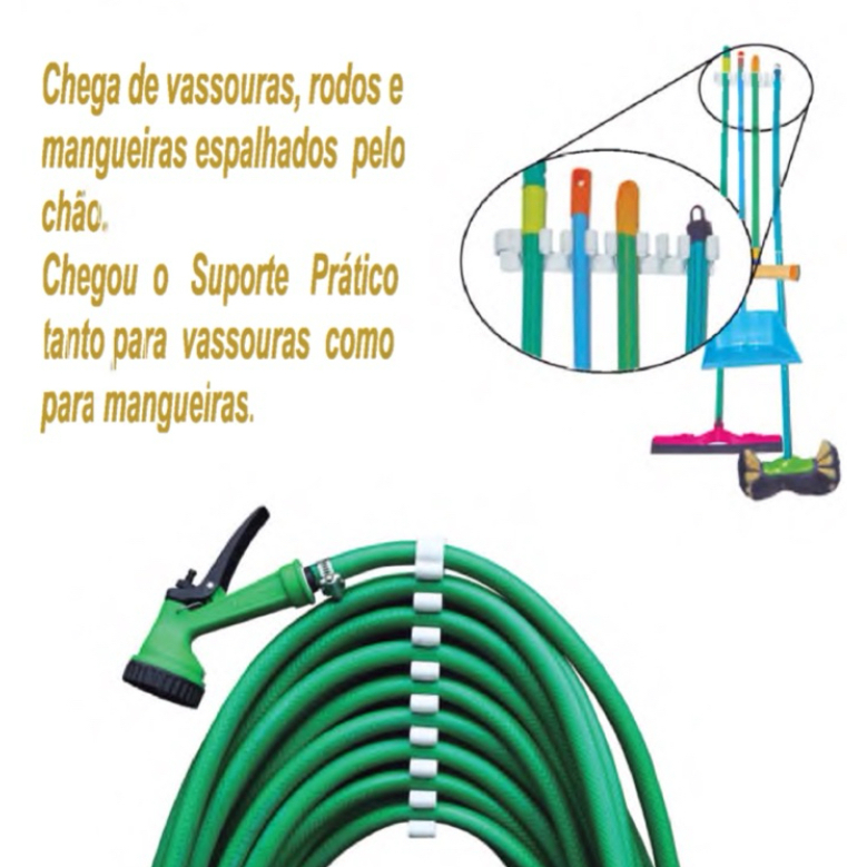 Kit 1 a 5 Suportes Multiuso Para Vassouras Enrola Mangueira Pratico Organizador
