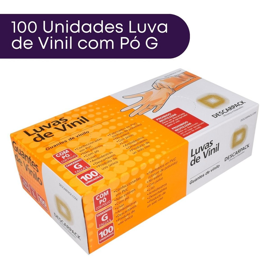 Luva de Vinil C/ Pó Tamanho G Caixa C/100 Unidades - Descarpack