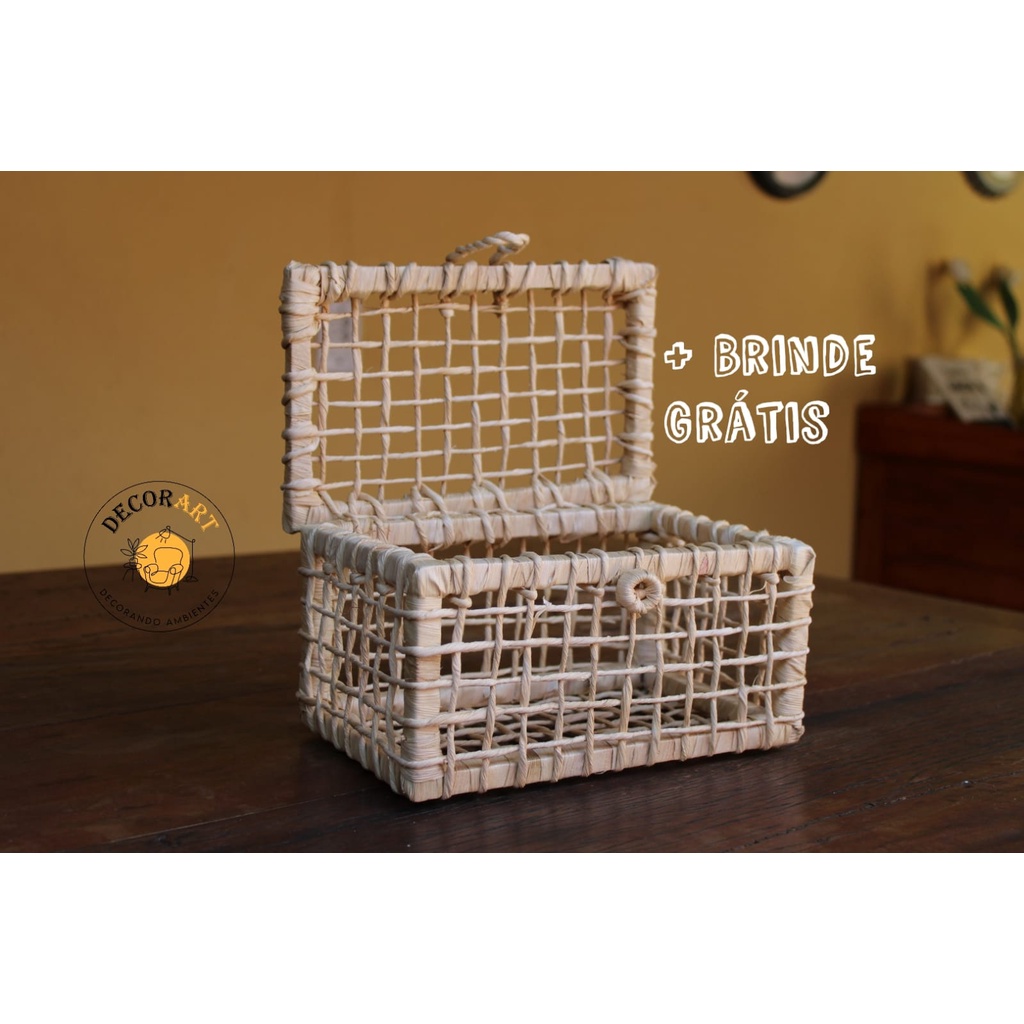 Baú Palha de Milho Natural Cesta Café da Manhã presente Caixa Organizadora N1 23x14x12