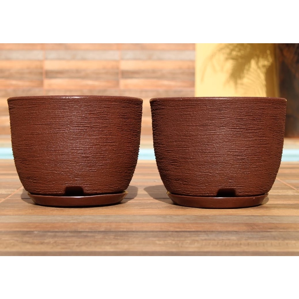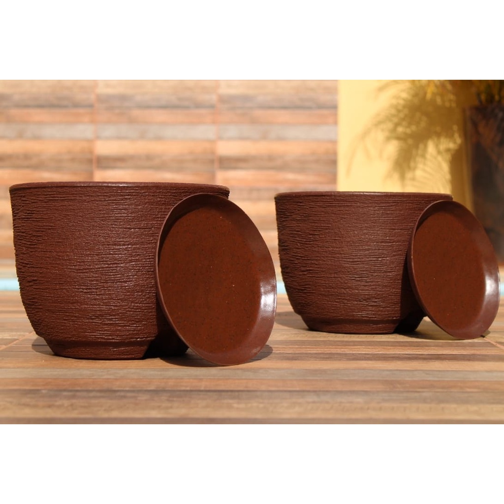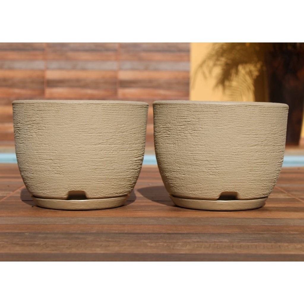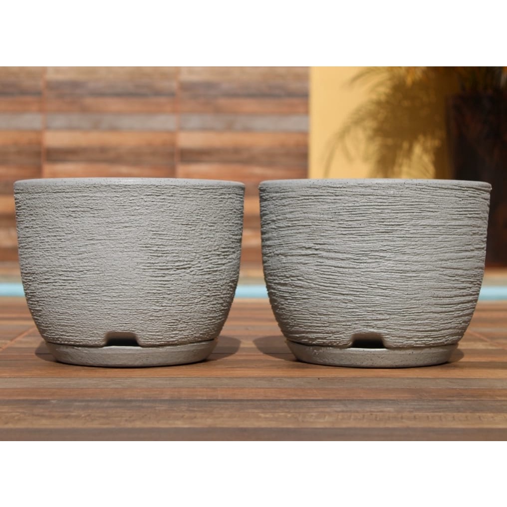 Kit com 2 Vasos de Planta Redondo Decorativo Bojo Escovado N1 26x20 com Prato