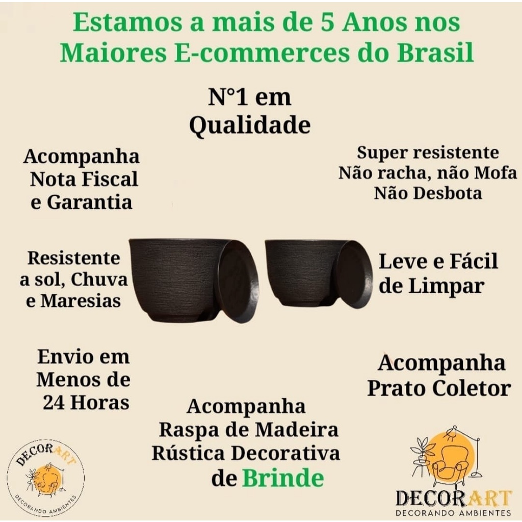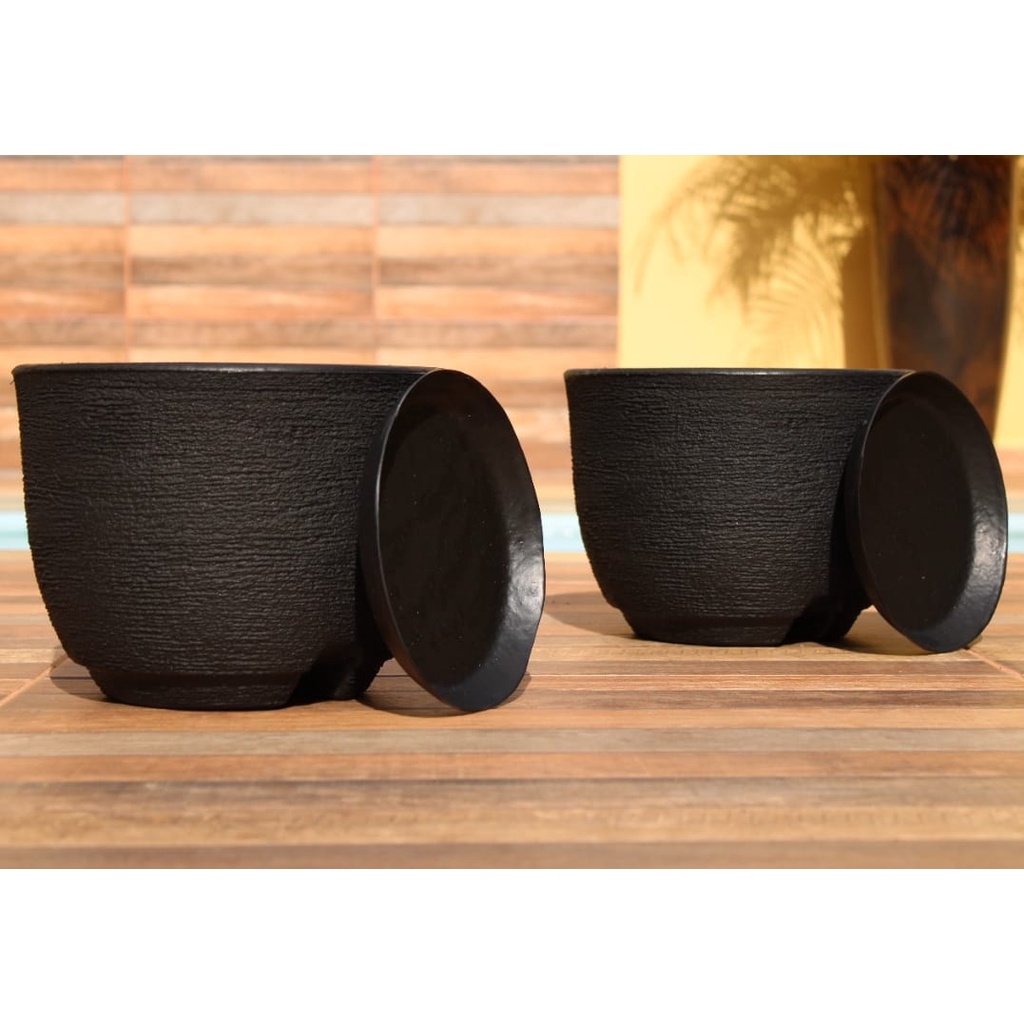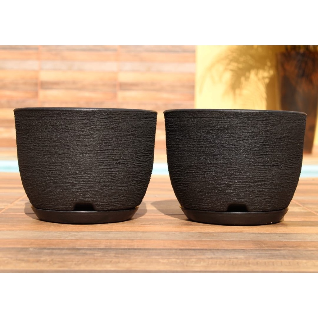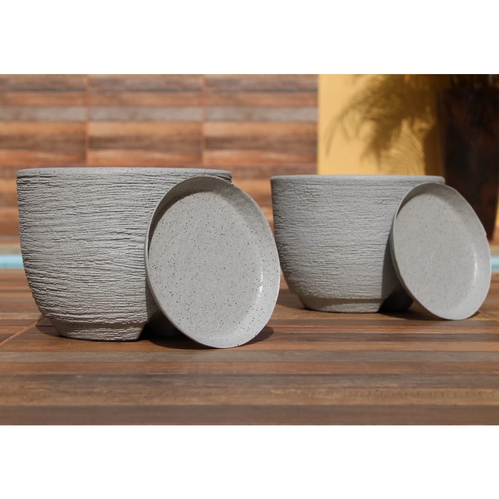 Kit com 2 Vasos de Planta Redondo Decorativo Bojo Escovado N1 26x20 com Prato
