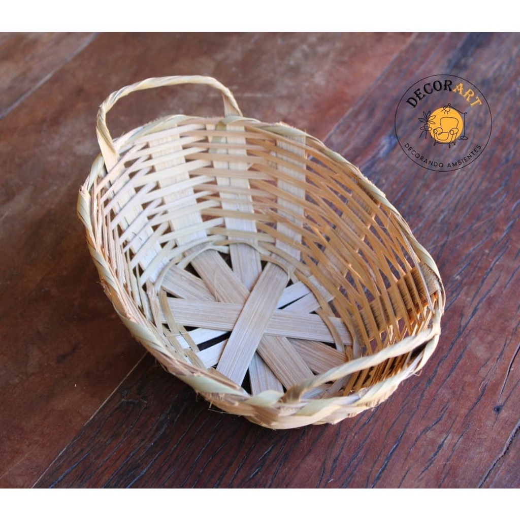 Kit Com 06 Cestinha de Bambu Galeto Mini com Alça (20x15x8)