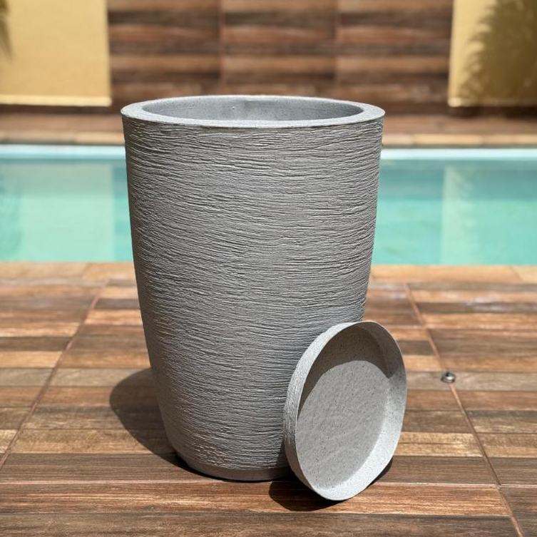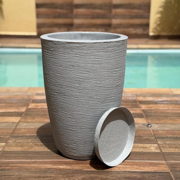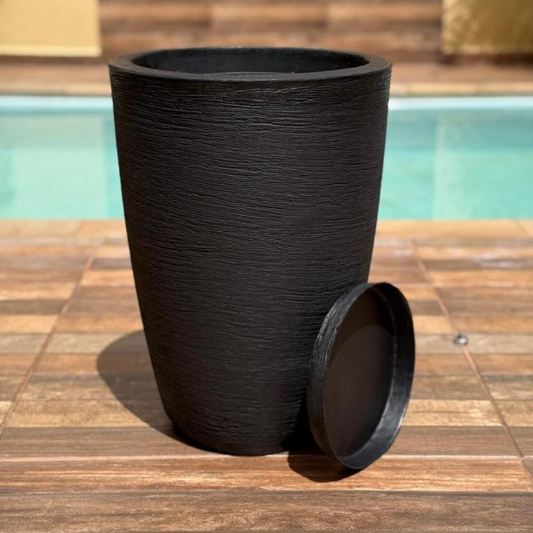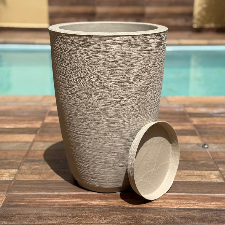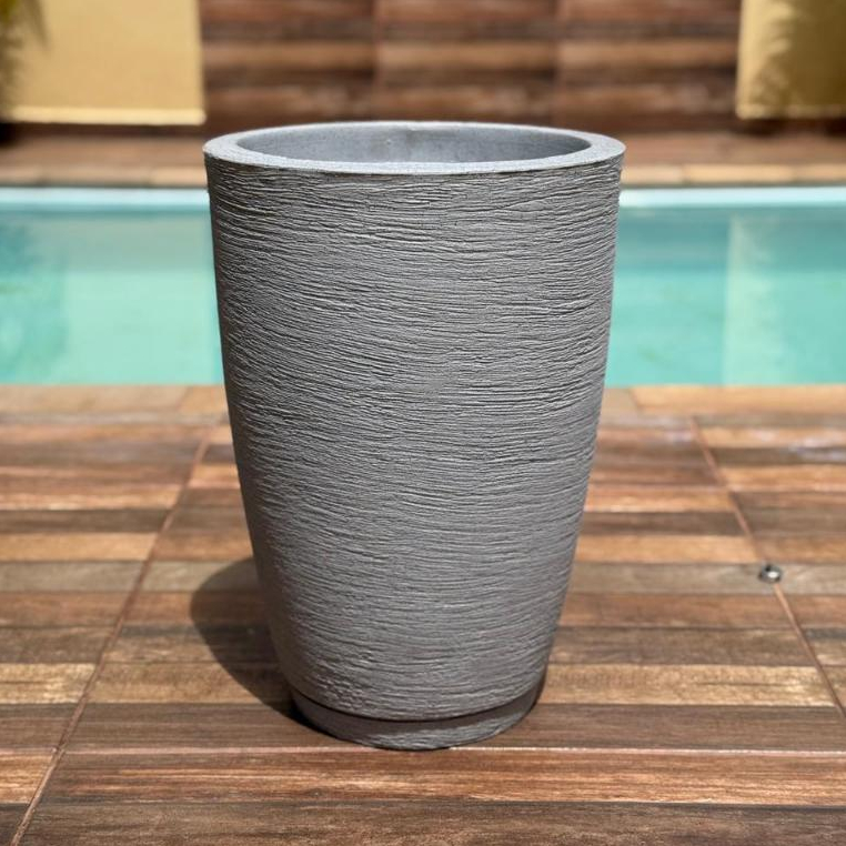 Vaso Para decoração e plantas Luxo de polietileno Redondo texturizado Barcelona N2 com prato