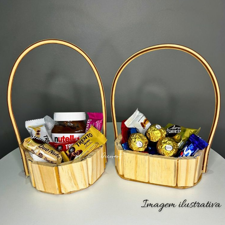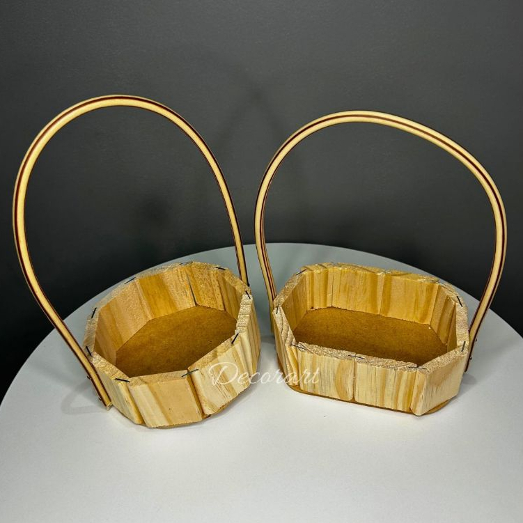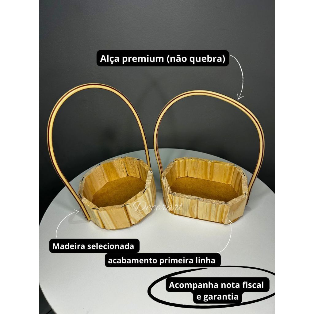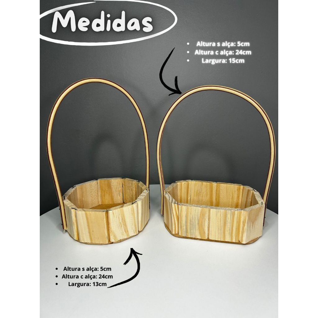 Kit 20 Cestas de madeira Fraldeira Pinus 10 oval + 10 Redonda Com Alça para presente