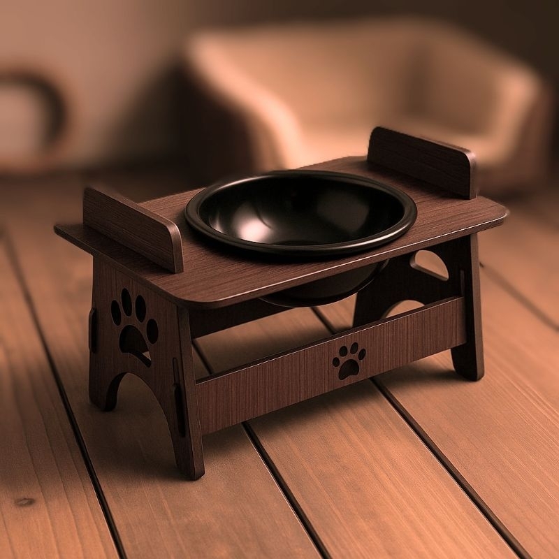 Comedouro Elevado em MDF para Cachorro e Gato – Design com Patinhas