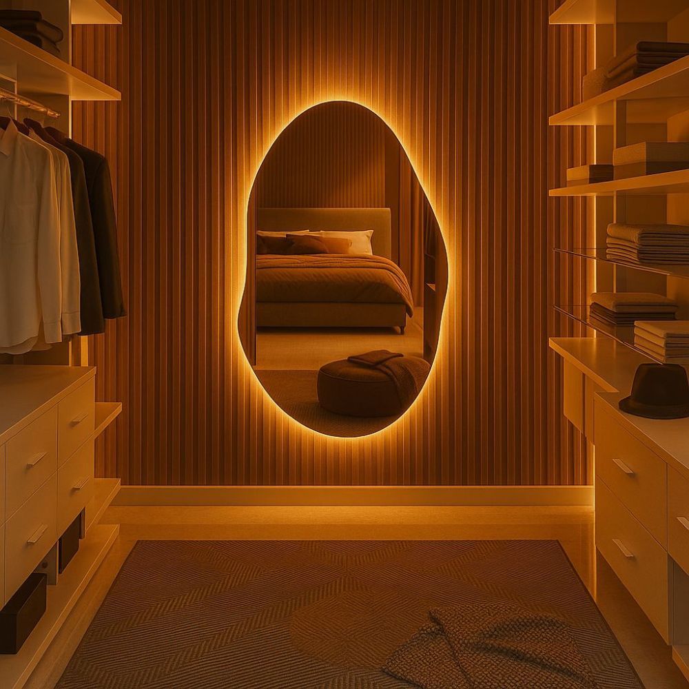 Espelho Grande Orgânico Decorativo Lapidado com Led para Sala Quarto Banheiro Cozinha