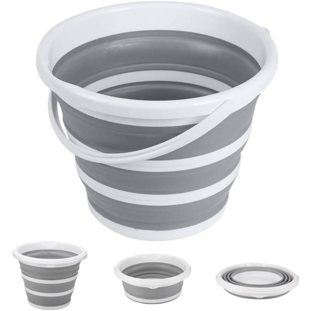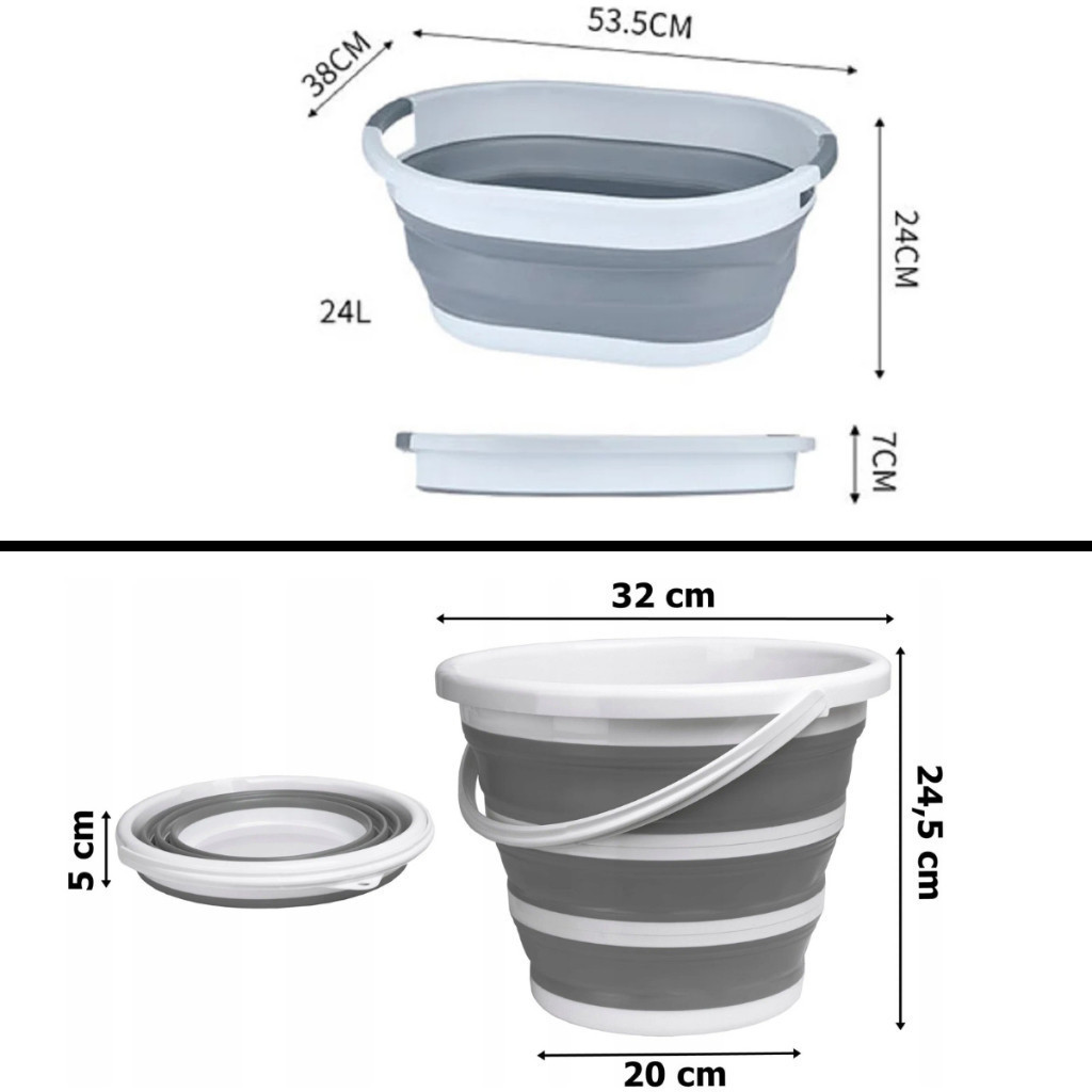 Kit Com 1 Cesto De 26 Litros Retrátil de Silicone E 2 Baldes De 10 Litros Retrátil Dobrável Silicone Powermaid