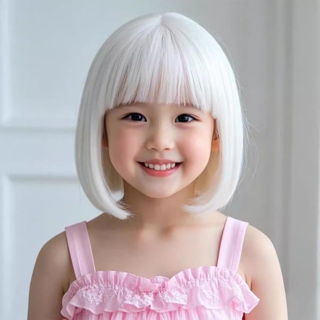 Peruca Infantil Bebê Meninas cosplay anime Curto Cabelo Reto Desempenho Foto Presente Doce bob De Cabeça Cheia