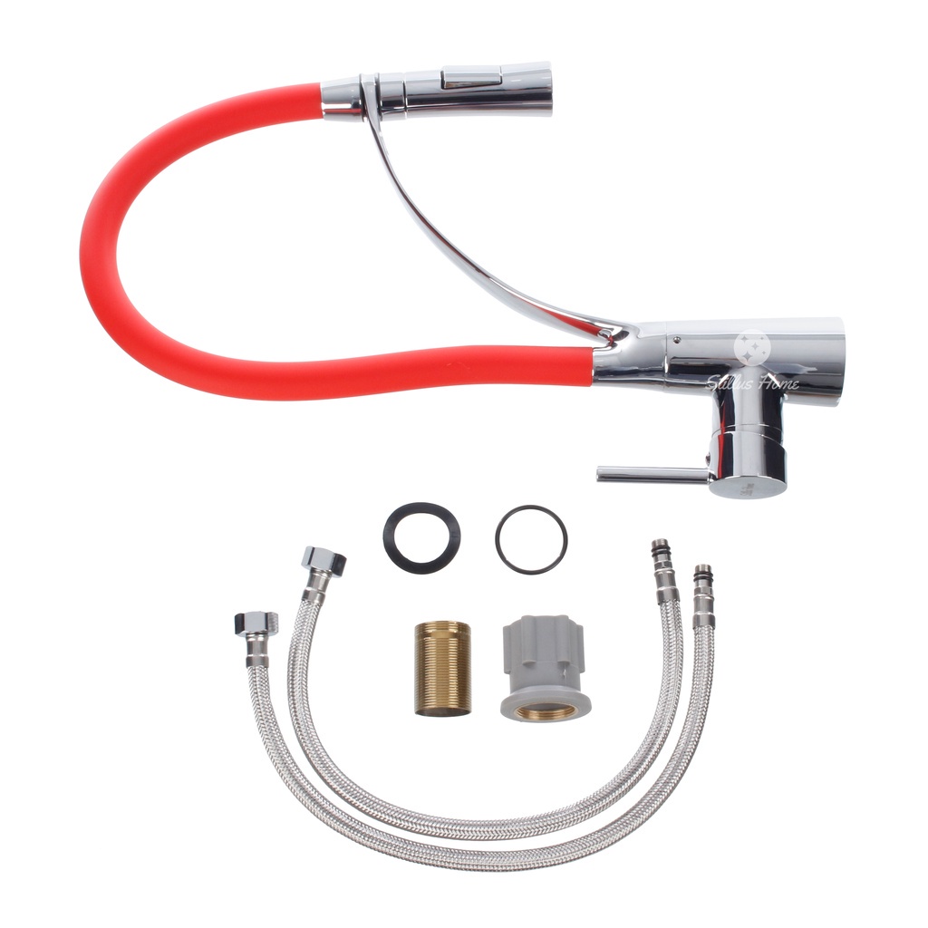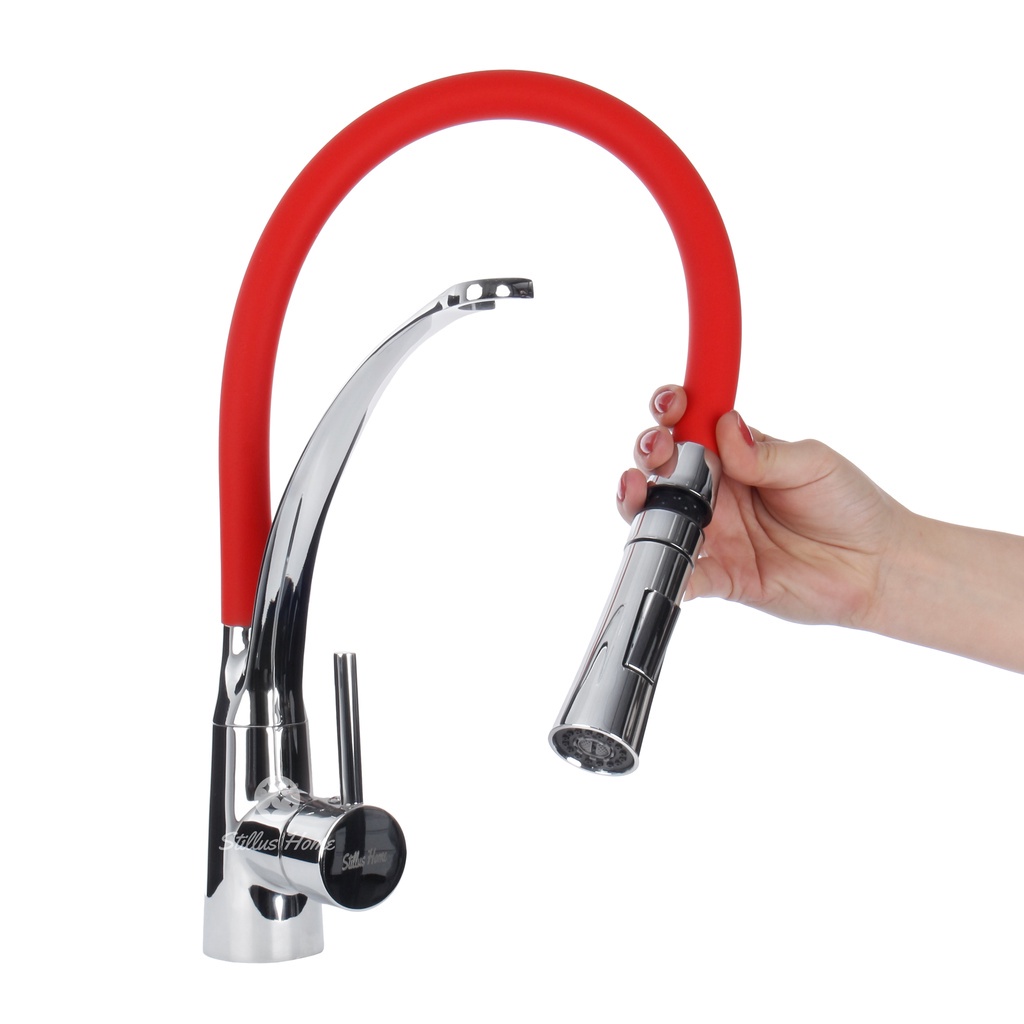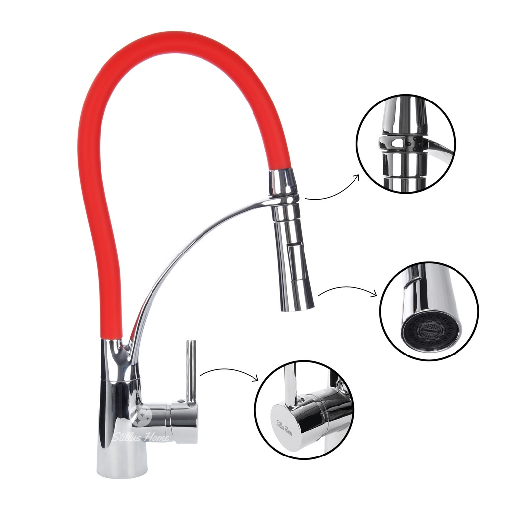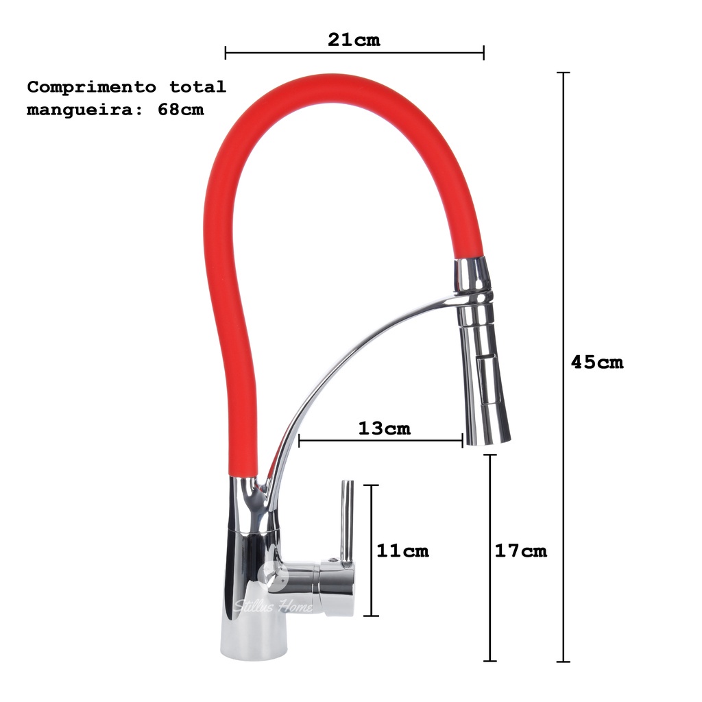 Torneira Cozinha Gourmet Misturador Flexível Vermelha Premium