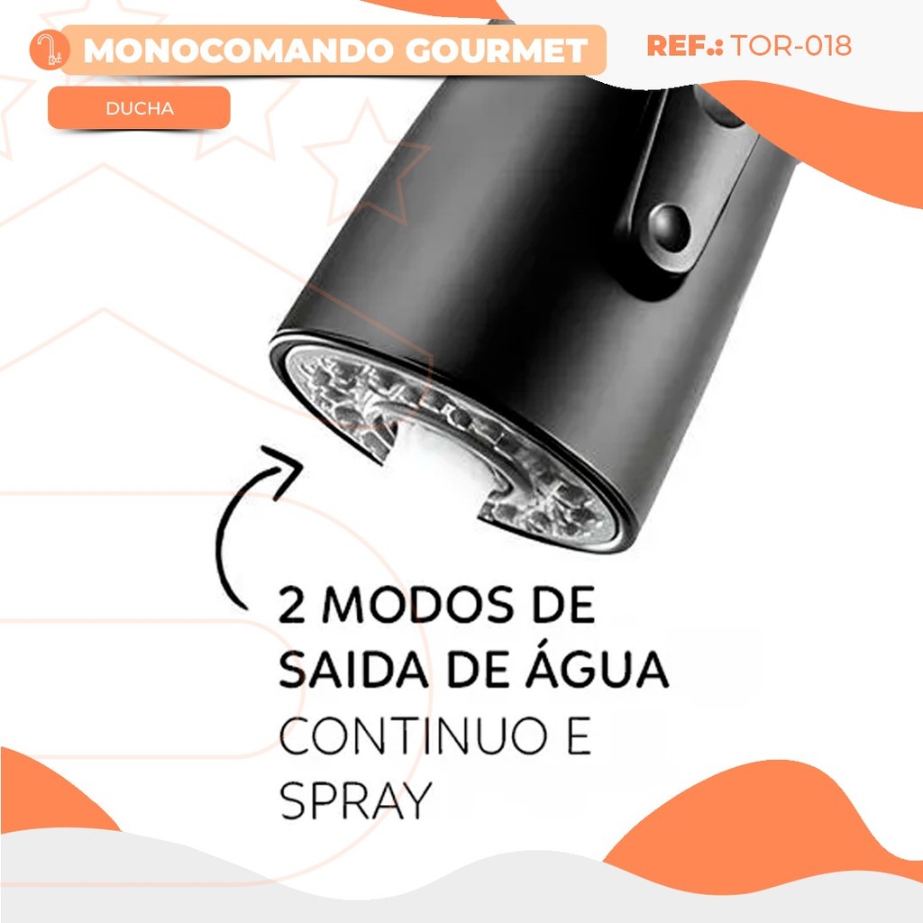Torneira Cozinha Gourmet Monocomando Aço Inox Com Extensor Preta