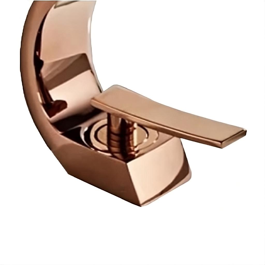 Torneira Banheiro Monocomando Cascata Curva Rosê Gold Luxo
