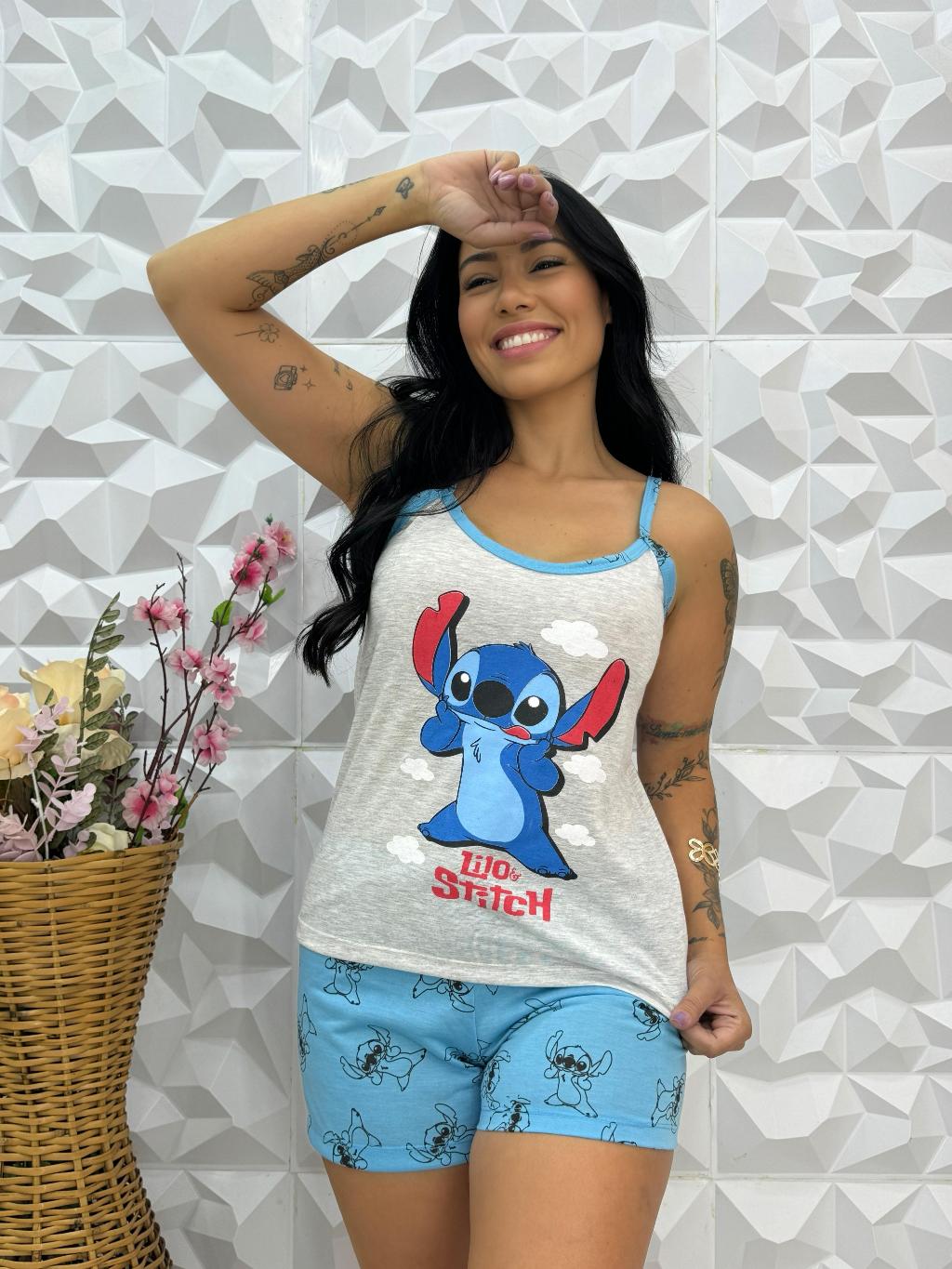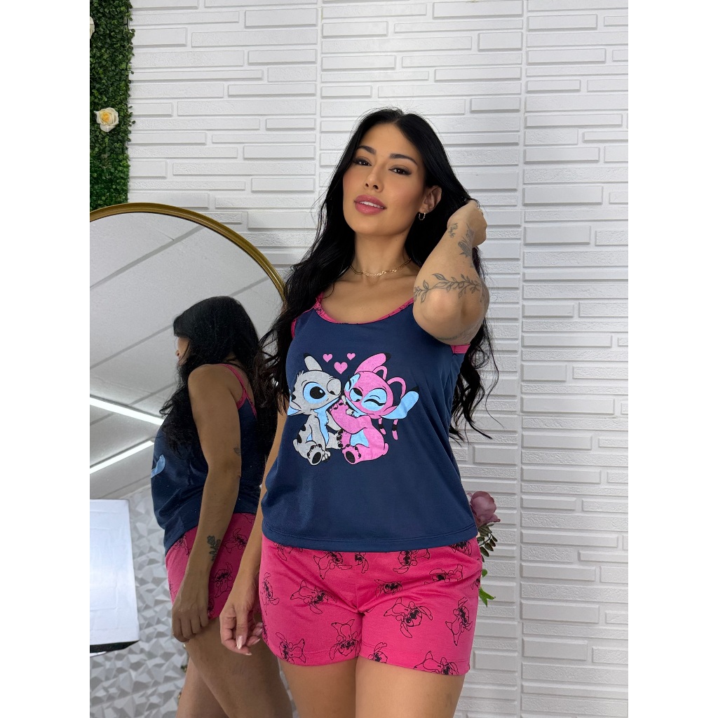 Baby Doll Stitch Alcinha Verão Short Doll Feminino Adulto