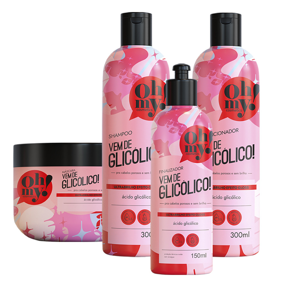Kit Vem de Glicólico! Shampoo Cond Másc 300 e Fin 150 Oh My!