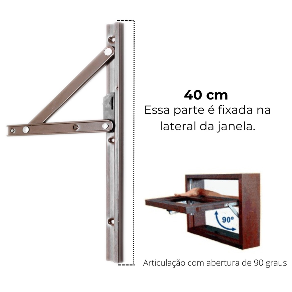 Braço articulação maxim ar 40cm para janela de madeira basculante marrom Rodinato 1 PAR max ar