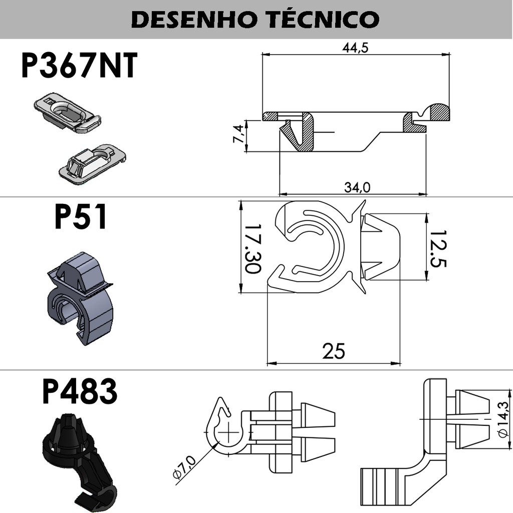 Kit Grampo Presilha 3 Peças Vareta Capô Celta Classic Corsa Prisma Tigra