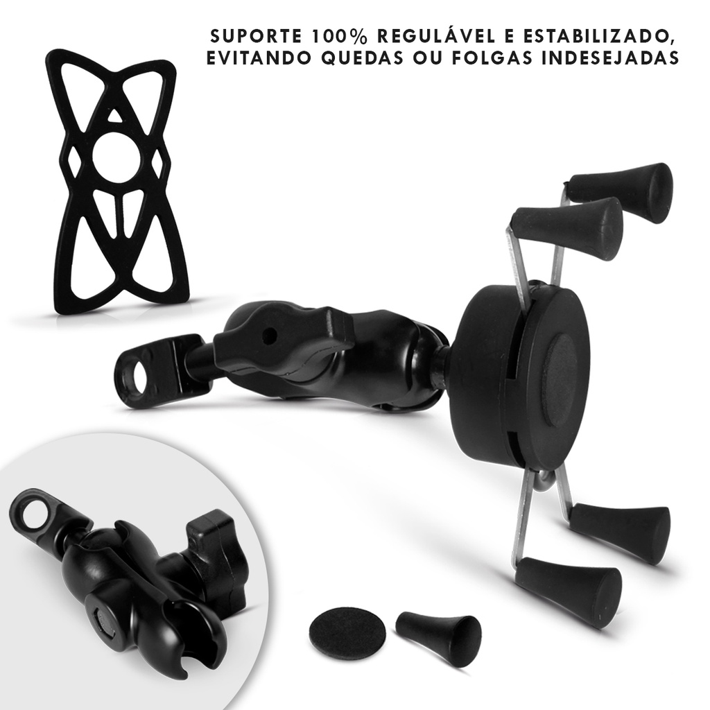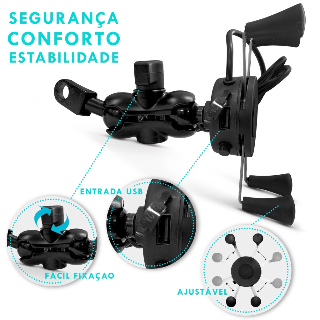Suporte Celular Articulado Moto Com Carregador USB Universal