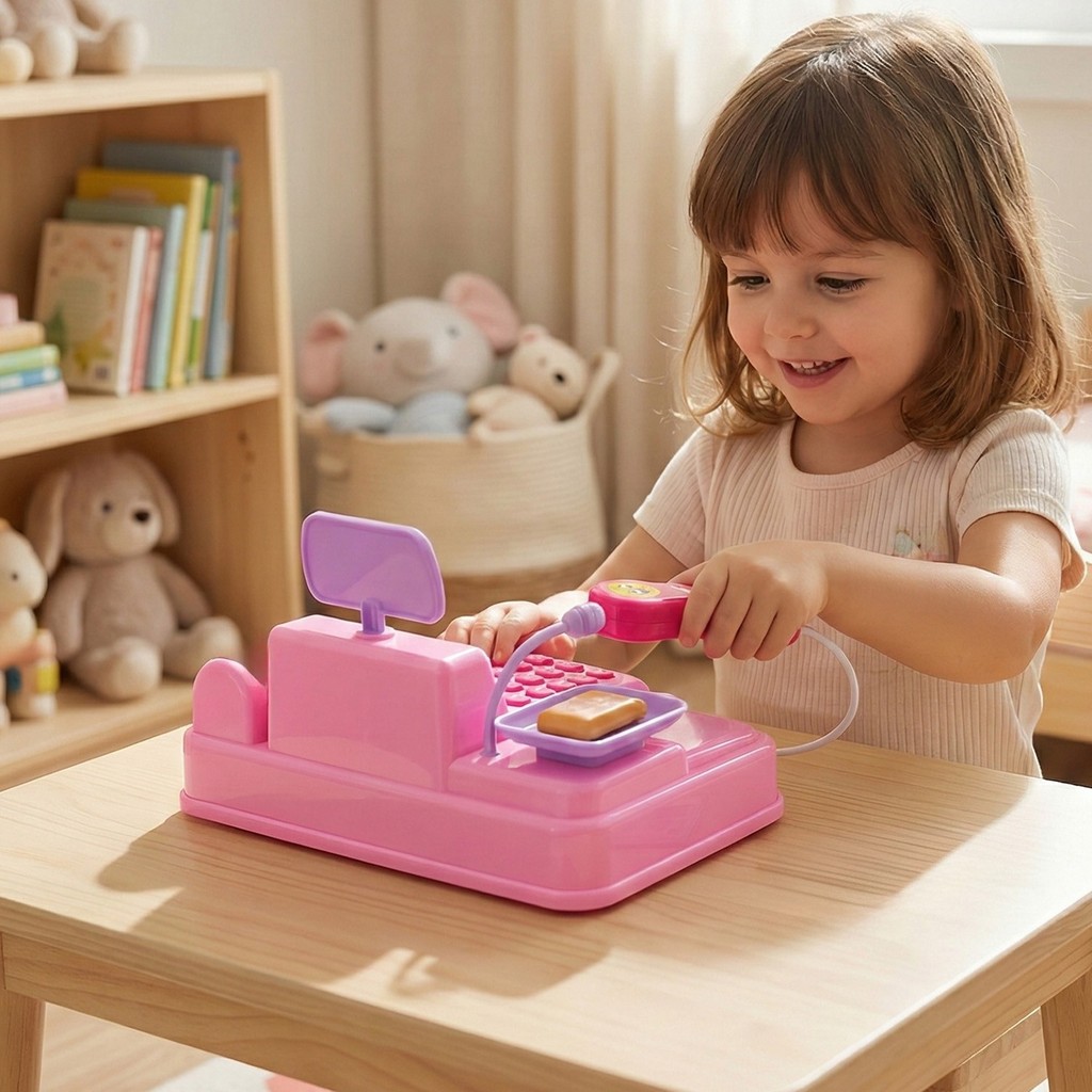 Brinquedo Caixa Registradora Mercado De Brinquedo Rosa Com Luzes Sons E Acessórios