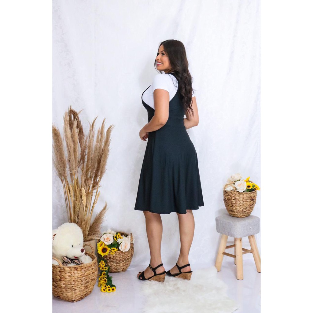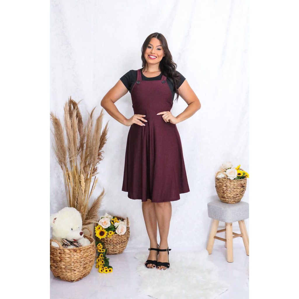 Salopete Jardineira Godê Rodada Moda Feminina em Promoção - Moda Evangelica e Cristã
