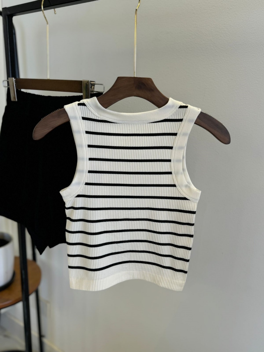 Blusa feminina básica premium Regata importar, branco preto listra