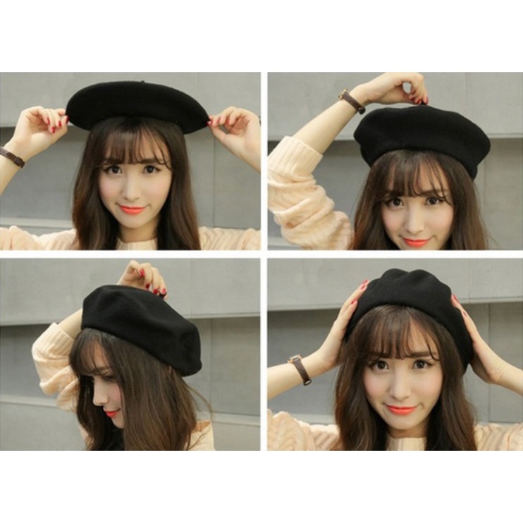 Boina Feminina Elegante Francesa De Cor Lisa Chapeu Estilo Pintor Vintage De Lã VARAIS CORES ENVIO IMEDIATO