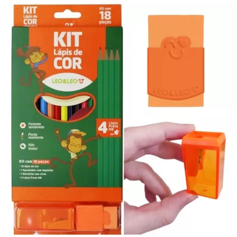 Kit Escolar Com 18 Pecas Lapis De Cor lápis apontador borracha