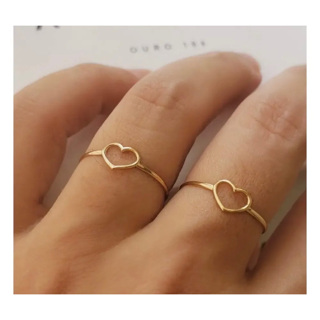 ANEL CORAÇÃO VAZADO PRATA OU DOURADO AÇO INOXIDAVEL