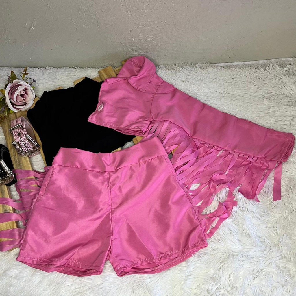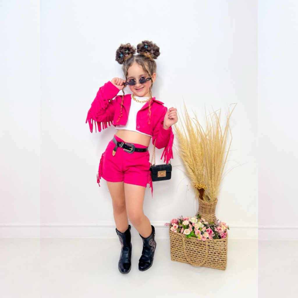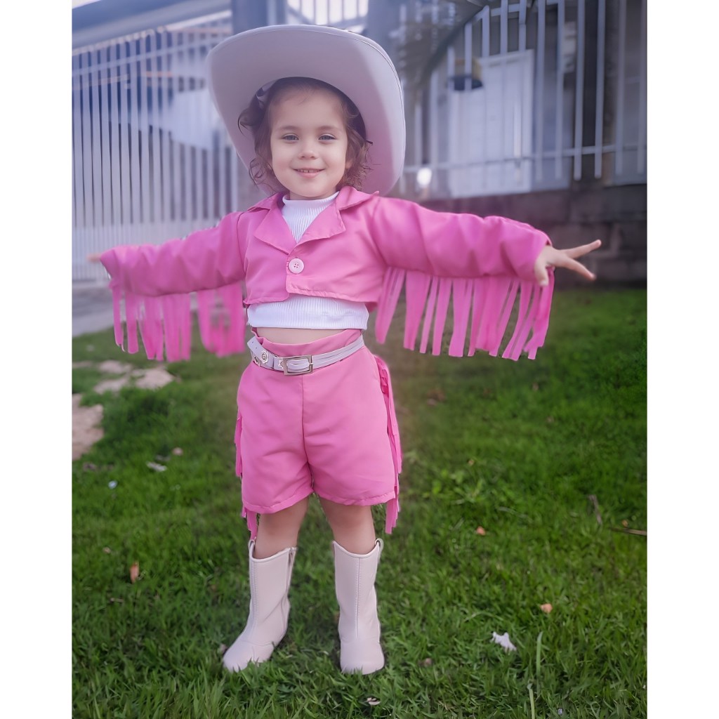 Conjunto Fantasia Infantil Menina Boiadeira Ana Castela Country Rosa/Pink Rodeio Festa Aniversário