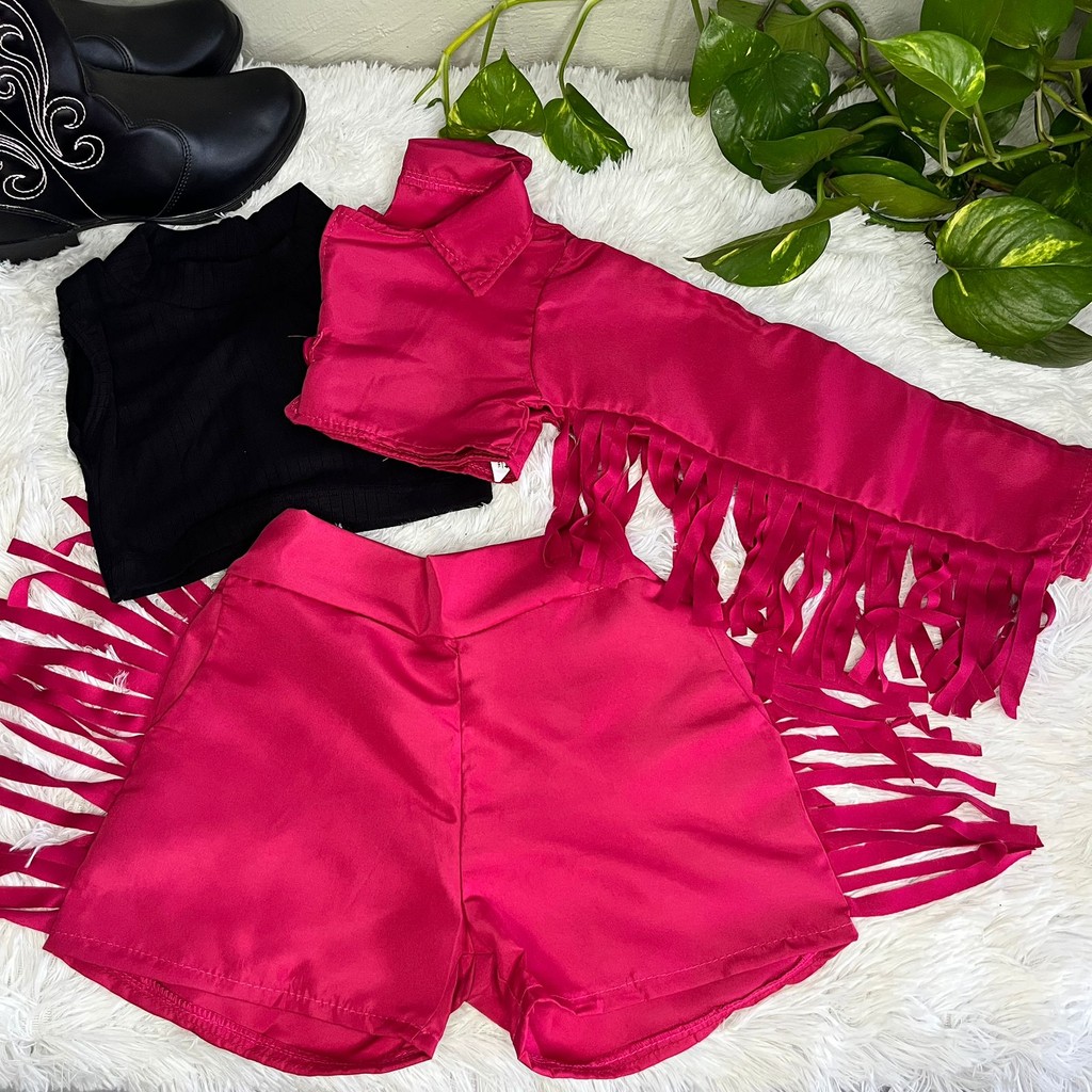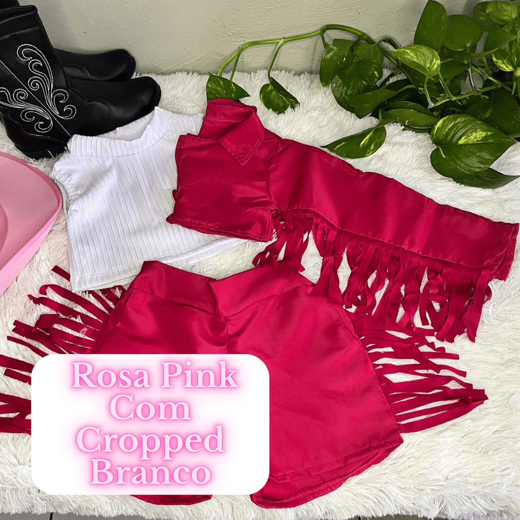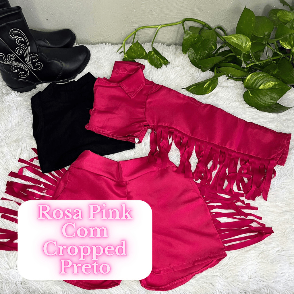 Conjunto Fantasia Infantil Menina Boiadeira Ana Castela Country Rosa/Pink Rodeio Festa Aniversário