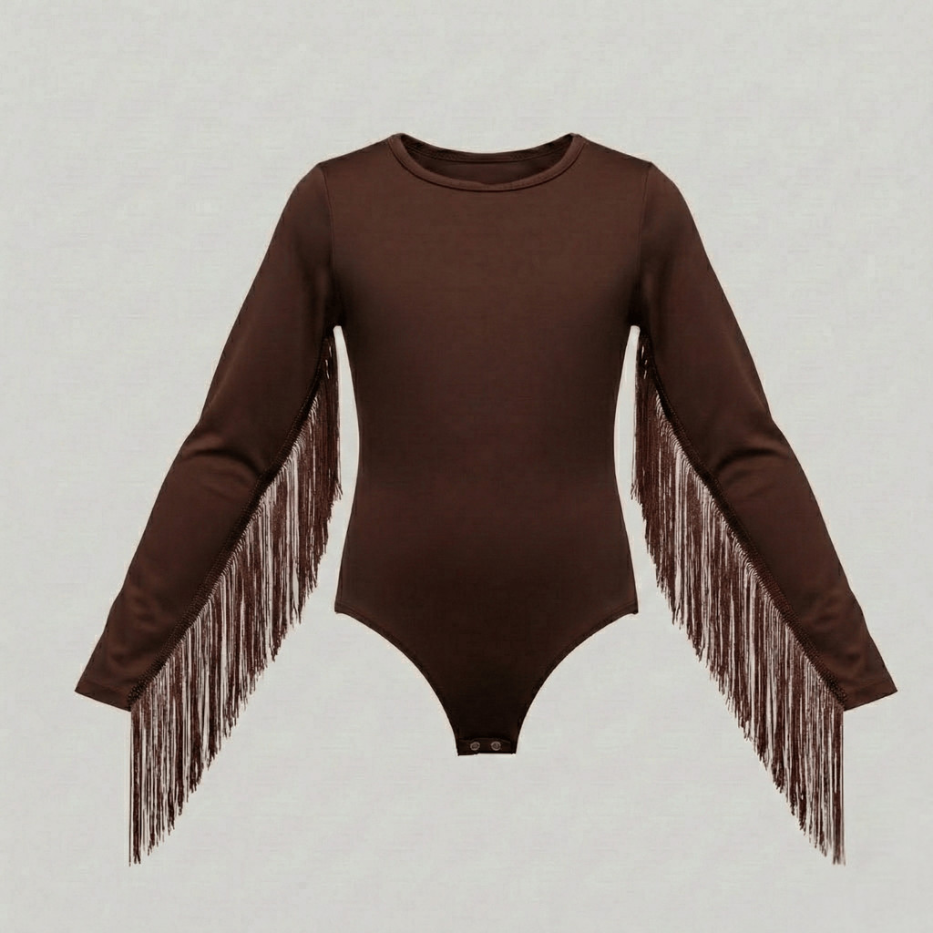 Body Infantil Ana Castela Country Vermelho Marrom | Manga Longa Menina C/Franja Tam. 4 ao 16